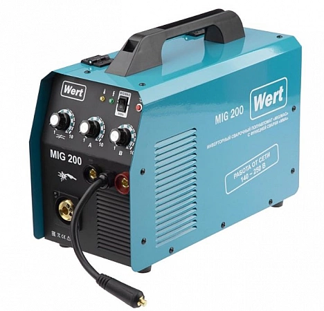 En extremt enkel halvautomatisk enhet, utrustad med de nödvändiga funktionerna för högkvalitativ svetsning av metall med en flusskärnatråd. Växelriktaren kan arbeta med reducerad spänning och det finns ett inbyggt termiskt relä för att skydda mot överhettning. Det exakta värdet på driftsparametrarna visas på en stor och ljus skärm. Den pålitliga matningsmekanismen är gjord av metall, vilket garanterar en lång livslängd. Modellen har dock en betydande nackdel - till skillnad från konkurrenterna är enheten inte designad för att fungera med solid tråd och stickelektroder i MMA-läget, vilket begränsar omfattningen.