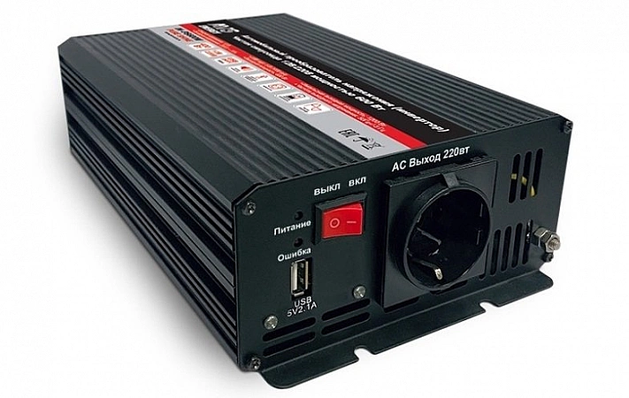 Högpresterande bilinverterare med möjlighet till stationär installation, som kan användas för att driva kraftfulla energikonsumenter. Designen inkluderar två standarduttag och en USB-port, som gör att du kan ansluta flera enheter samtidigt. Samtidigt är USB-portens nuvarande styrka 2,1 A - för de flesta tillverkare överstiger denna siffra sällan 1 A. Ett effektivt forcerat kylsystem tar bort värmen väl, vilket förhindrar att enheten överhettas. En trevlig överraskning kommer också att vara högkvalitativa ledningar som behåller sin flexibilitet även vid minusgrader. Men av någon anledning ingår inte krokodilerna i satsen - de måste köpas separat.