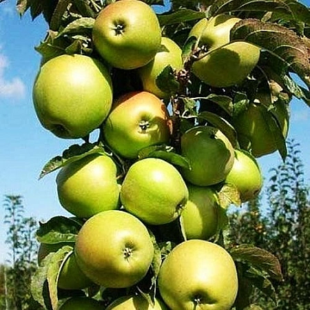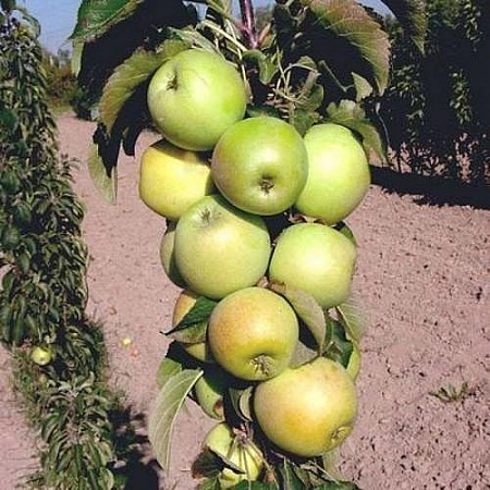 En halvdvärgsort som har hög vinterhärdighet och är resistent mot olika sjukdomar och skadedjur. Uppfödare erkände det som en av de bästa inhemska sorterna av kolumnformade äppelträd. Den kompakta storleken hindrar inte alls trädet från att bära rikligt med frukt, vilket ger ganska stora kålrotsformade äpplen. Trädgårdsmästare börjar skörda äppelträd under det tredje året av trädets liv. Frukterna smakar sött och surt, de lagras inte under lång tid, de är lämpliga för färsk konsumtion, torkning och tillverkning av kompotter. Sommarinvånare i Moskva-regionen väljer en sort för tidig fruktmognad, hög avkastning, som når upp till 20 kg per äppelträd, och ett tätt rotsystem som säkerställer god överlevnad för trädet under nya förhållanden.