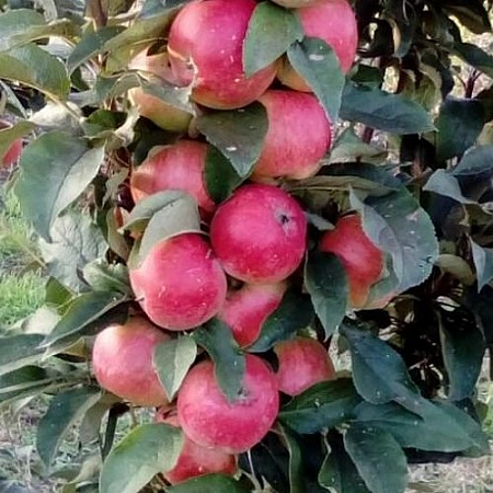 En halvdvärgsort som snabbt börjar bära frukt och attraherar med hög produktivitet samtidigt som den sparar planteringsyta. Det eleganta äppelträdet kännetecknas också av god produktivitet, motståndskraft mot frost och immunitet mot olika sjukdomar. Årliga plantor börjar bära frukt under det första året från plantering. För allt detta blev sorten kär i många trädgårdsmästare i vårt land. Äpplen är ganska stora i storlek, glädje med en behaglig arom, söt smak med en knappt märkbar surhet. De smulas inte, sitter tätt på trädet och väntar på skörden. Skördade äpplen lagras i 3-4 månader och behåller sina fördelar och utmärkta smakegenskaper.