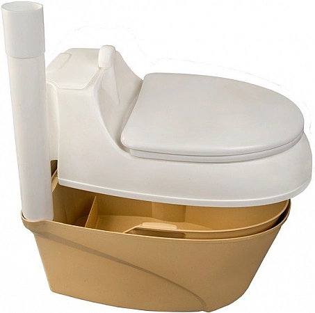 En universell komposttorrgarderob för sommarstugor, som kan installeras både i ett uppvärmt rum och i ett separat rum på gatan, eftersom kroppen är gjord av frostbeständig plast. För att få bort lukten utanför toaletten finns ett ventilationssystemrör och ett rör i sig 2 meter långt, som måste förinstalleras. För att ta bort vätskan finns det ett dräneringsutlopp, genom vilket flytande avfall kan ledas in i en grop eller vilken behållare som helst. Den nedre tanken med en volym på 44 liter har en avtagbar design. Dess volym räcker för att tjäna en familj på tre i en månad. För att ta bort avfall tas den övre delen av torrgarderoben bort och ger tillgång till den nedre tanken. Nackdelen är att ventilation och avlopp måste installeras före användning.