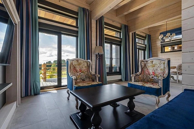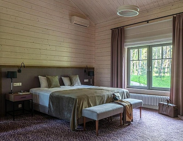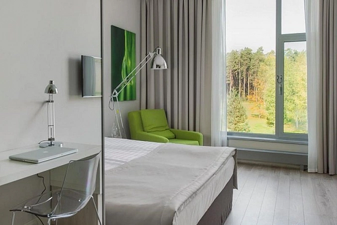 Detta lanthotell kan kallas ett sanatorium eller till och med ett konsthotell. Det fungerar på all inclusive-basis, så förutom boende kan gästerna besöka SPA-området, poolen och fitnesscentret utan begränsningar. Huvudfunktionen är närvaron på territoriet till ett modernt medicinskt center, där du kan genomgå många läkningsprocedurer. Att döma av recensionerna ger de verkligen ett resultat, som förstärks av atmosfären av avkoppling och tystnad. Rummen är utrustade med panoramafönster som erbjuder fantastisk utsikt över skogen. På fritiden kan du gå längs vandringslederna och andas in den friska luften. Det är svårt att hitta dåliga recensioner för detta center, den enda nackdelen är det höga priset.