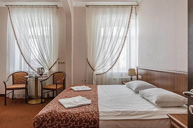 Ett enkelrum på detta hotell kan hyras för lite mer än 2 500 rubel. Trots de låga levnadskostnaderna har hotellet ett SPA-område och annan underhållning.