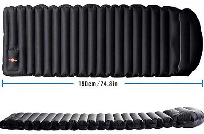 Ang self-inflating mattress ay kasama sa rating ng pinakamahusay na travel mat mula sa Aliexpress dahil sa perpektong kalidad ng foam.Ito ay hindi lamang komportable na humiga dito, ngunit maaari mo ring kalimutan ang tungkol sa pagsuntok. Gayunpaman, upang makamit ang ipinahayag na taas na 5 cm sa unang pagkakataon, kakailanganin mong mag-pump up gamit ang isang pump o ang iyong sariling mga baga. Ngunit pagkatapos ay maaari kang humiga kaagad at magpahinga! O mag-pump up ng pangalawang alpombra, dahil dalawa sila sa set. At upang ang mga kutson ay hindi lumikha ng hindi kinakailangang paggalaw, maaari silang konektado sa bawat isa gamit ang mga pindutan. Sa kumpletong kawalan ng mga claim sa kalidad sa bahagi ng mga user, ginagawa nitong karapat-dapat ang Flytop S-IM40 kit sa pinakamataas na lugar sa rating.