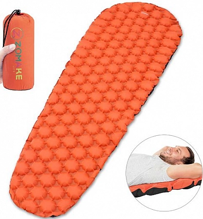 Walang tagapuno sa mga produkto, at ang kinakailangang lakas at pagkalastiko ay nakakamit sa pamamagitan ng paggamit ng binibigkas na pagbubutas. Ito ang pinakamagagaan na travel mat na kumukuha ng kaunting espasyo kapag nakatiklop. Upang mapalaki, kailangan mong ibuka ang produkto, buksan ang balbula at pindutin ito gamit ang iyong kamay o paa. Mahusay para sa mainit-init na panahon, ngunit sa ibaba -5 ay hindi makatiis.