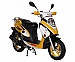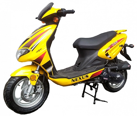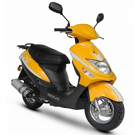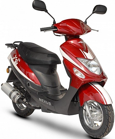 Ang tagagawa ng Tsino na Nexus ay nagbabayad ng maraming pansin sa hitsura ng kagamitan nito. Masasabi nating mas maganda ang hitsura ng kanilang mga scooter kaysa sa iba. Halimbawa, bilang default, nakakakuha ka ng LED underbody lighting at alloy wheels. Kasama rin sa pangunahing pakete ang isang sports muffler, na maaari mong i-install sa iyong sarili. Ang scooter ay angkop na angkop sa pag-tune, na kadalasang tinatawag na pangunahing bentahe nito. Bilang karagdagan, ang pagpipilian ay mura at may katanggap-tanggap na mga teknikal na katangian. Mayroon itong 50cc engine na nagpapalabas ng 3.3 lakas-kabayo.Ito ay lubos na karapat-dapat para sa pokatushek sa paligid ng lungsod at kahit na higit pa. Ang 12 inch na gulong ay ayos lang.