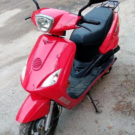 Kung mura ang scooter, hindi naman kailangang Chinese. Ang aparatong ito ay binuo sa Russia, gayunpaman, mula sa mga bahagi ng Tsino. May advantage ito. Halimbawa, mas madaling makahanap ng mga ekstrang bahagi para sa isang moped, ngunit mas mura ang mga ito. Sa mga tuntunin ng serbisyo, ito ang pinakamahusay na pagpipilian, at dahil sa abot-kayang tag ng presyo, kakailanganin niya ito. Pansinin din ang kaakit-akit na hitsura. Ang scooter ay ginawa gamit ang mga sporty na ambisyon.Ang pinaikling tuka at dual rear shocks ay ginagawa itong parang isang motocross bike, tulad ng mga gulong sa labas ng kalsada. Ngunit huwag agad umakyat sa putik dito. Ang isang 50cc na makina ay hindi sapat na malakas upang tamaan ang mga bumps. Ngunit ito ay mahusay para sa paglalakad at paglipat sa paligid ng lungsod.