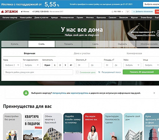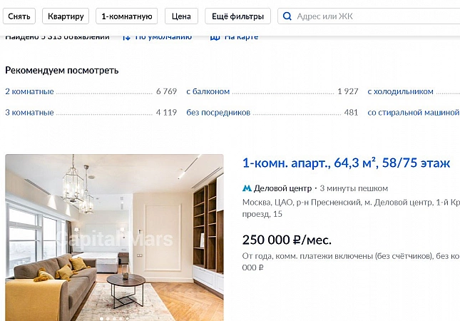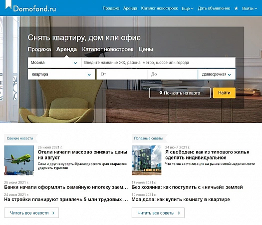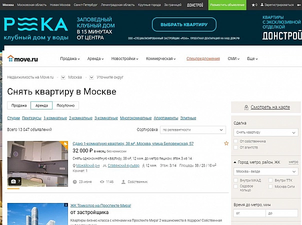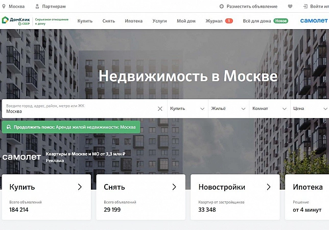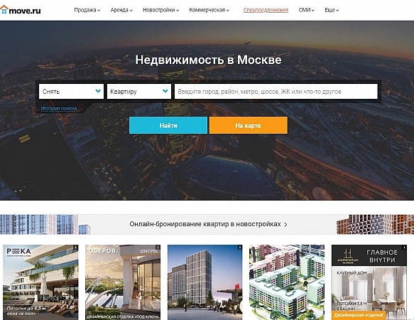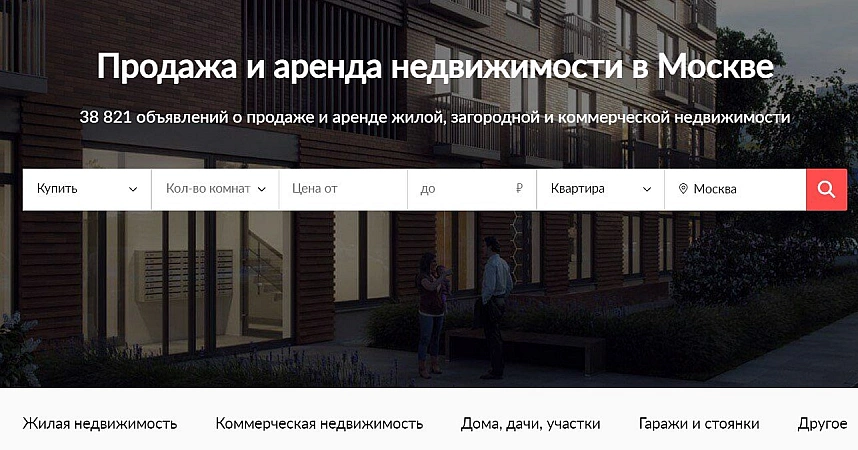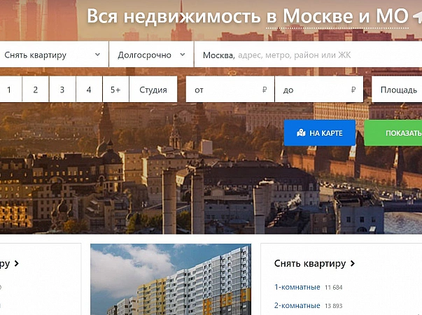 该网站专门从事房地产买卖,仅在莫斯科和莫斯科地区就有超过 4 万条广告。其中大约 30% 来自业主。