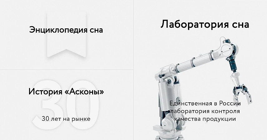 Askona是俄罗斯市场上最受欢迎的品牌之一。该公司生产适合各种口味的睡眠产品。在官方在线商店中,您会找到不同硬度和不同填充物的单人床垫和双人床垫。如有需要,您可以订购非标准尺寸的型号。该网站包含所有必要的信息,您可以根据所需的特性轻松选择产品。此外,为方便起见,该公司开发了一项特殊服务,可在 30 秒内为您找到最佳选择。买家高度赞赏 Ascona 产品的质量和耐用性,但是,该服务还有很多不足之处 - 从评论来看,这里的交货经常延迟,而且他们在电话中可能会很粗鲁。