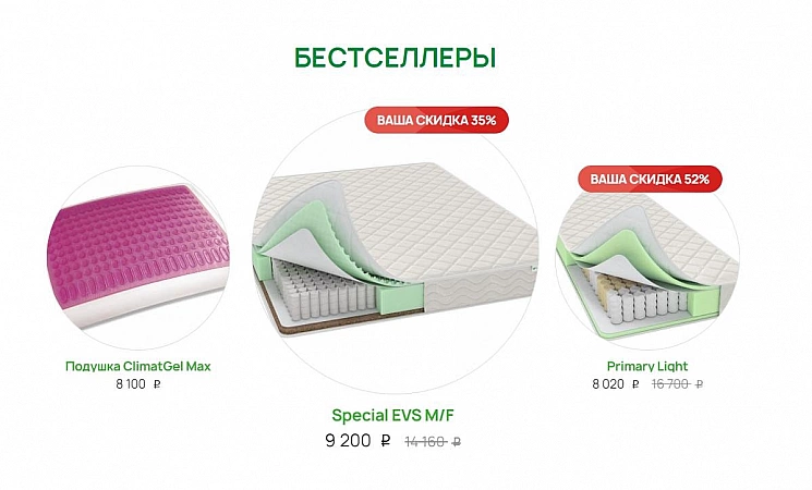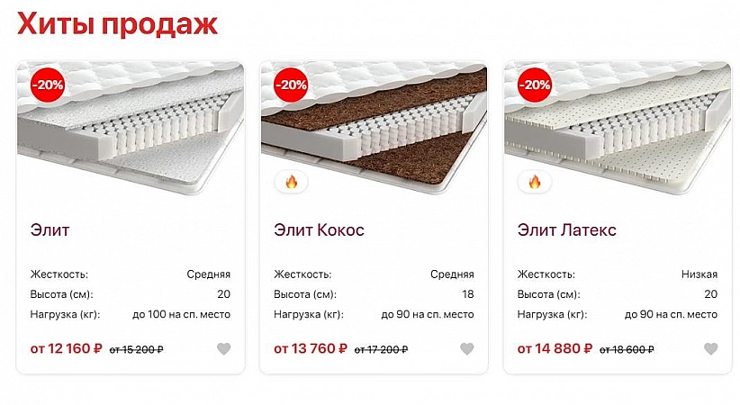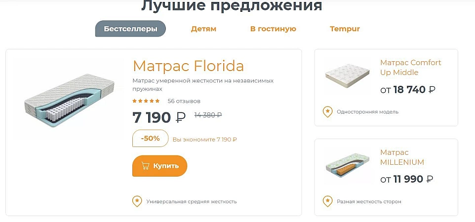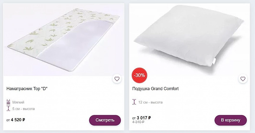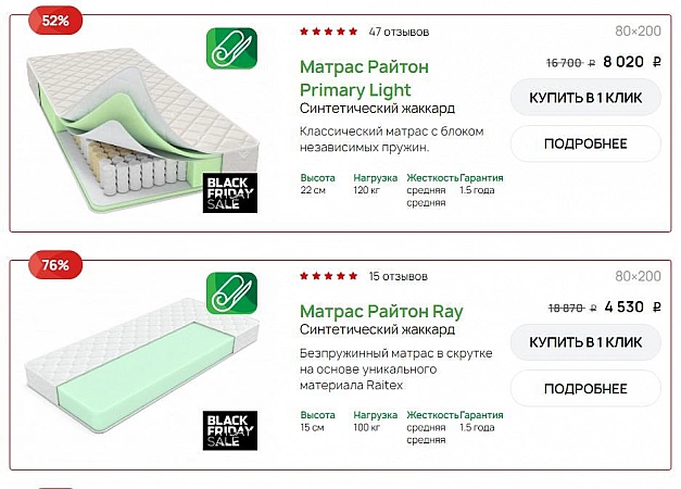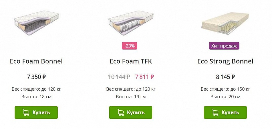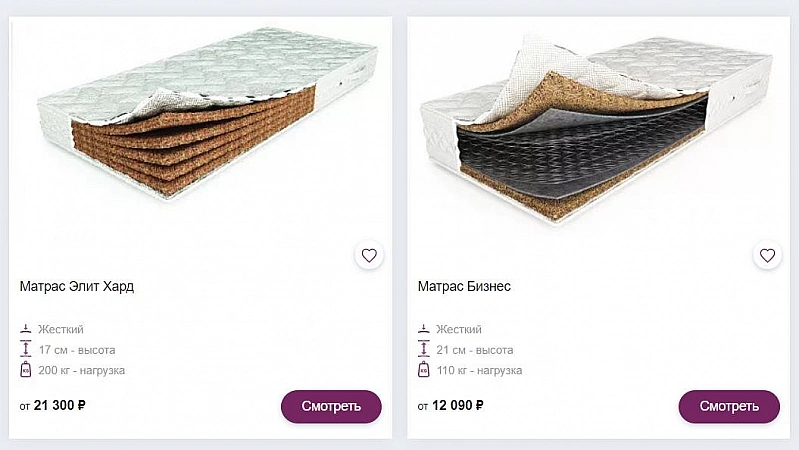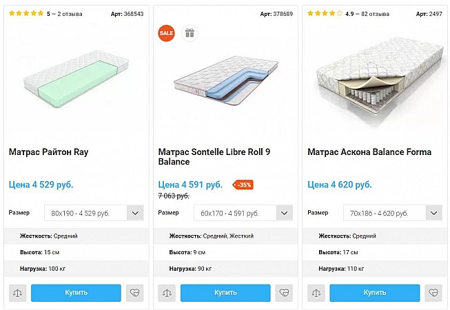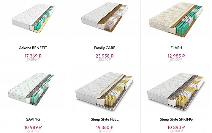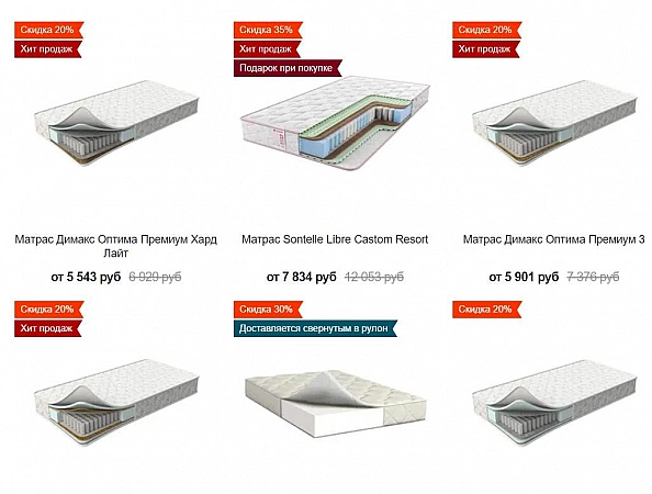 商店提供最佳的购物条件。在该网站上,您可以从 2518 卢布购买便宜的床垫。