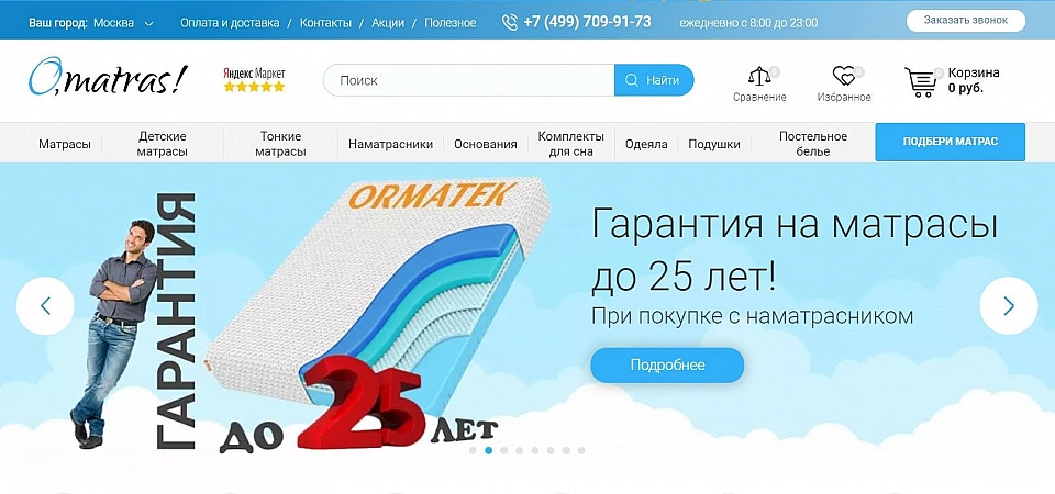 哦,马特拉斯!是 Ascona、Ormatek、DreamLine、Serta 和 Tempur 等流行品牌的官方经销商。在线商店包含大量的床垫和其他睡眠产品,因此您可以以实惠的价格轻松选择最佳选择。该网站提供便捷的模特搜索服务,但是,如果您需要专家建议,您可以随时拨打电话或在聊天中留言。总的来说,买家对 OMatras 商店的工作感到满意,只是物流系统让他们感到不安。运输公司并不总是遵守交货条款和时间,这会对整个组织的评级产生负面影响。