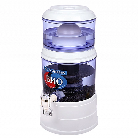 该模型以其紧凑配置的功能引起了人们的注意。木炭清洁以 5 阶段模式进行。因此,在最后阶段,水的成分变得不是中性的,没有机械成分、沙子、氯、铁,而是有用的。这是通过用矿物质使液体饱和来实现的。至于设计,除了一个足够家用的5升水箱外,这里还有一个单独的水龙头。陶瓷过滤器在维护上相当朴素,只需要定期清洗。评论中的所有者指出墨盒的好资源,它们需要每年更换一次。缺点之一是过滤速度慢。
