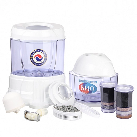 由于成功组合了对消费者来说很重要的几个组件,这款深受买家欢迎的清洁剂进入了评级。这是一个适中的尺寸,重量轻,同时体积相当大 - 未经处理的水箱为 6 升,过滤水 - 12 升。建议每月清洗一次设备的组件,它们需要更换的频率要低得多 - 过滤器至少可以使用六个月。另一个优点是结构的耐用性。它不会失去稳定性,不会断裂,不会破裂,塑料部件不会变色。滤膜是个例外。频繁过滤,包括杀菌和生锈水在内的4个净化阶段,它会变黄,需要高质量的护理。