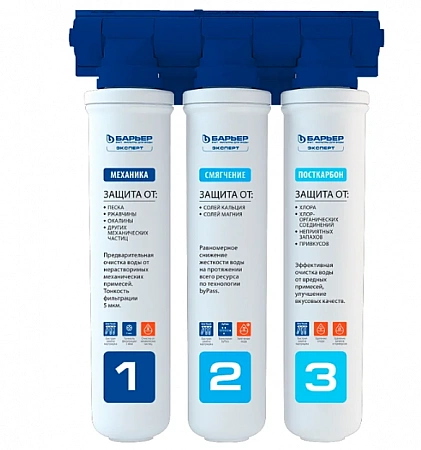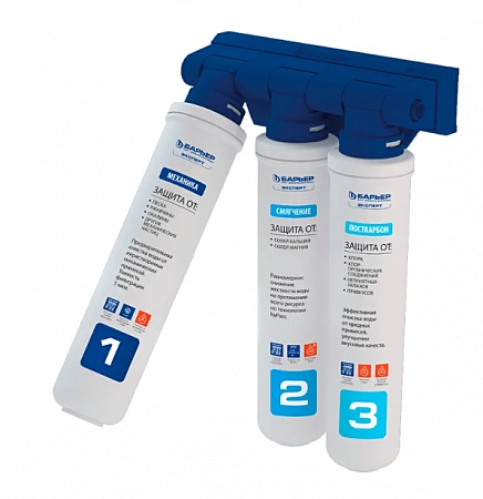 水槽屏障下的过滤器价格实惠,资源丰富(10,000 升),容量高达每分钟 2 升。同时,设备结构紧凑(26.7x36.8x9.5 cm)。根据用户评论,孔隙率为 5 微米的三级清洁质量很高,只需查看使用过的墨盒内部即可。净化器可让您在短时间内获得无异味的美味水。液体变得更软,所以水壶上没有水垢。缺点中,业主注意软化筒的实际寿命很小,它可以使用1.5-2个月,其余的可以每六个月更换一次。 “Barrier EXPERT Hard”的维护简单,无需请专业人员安装或更换墨盒。